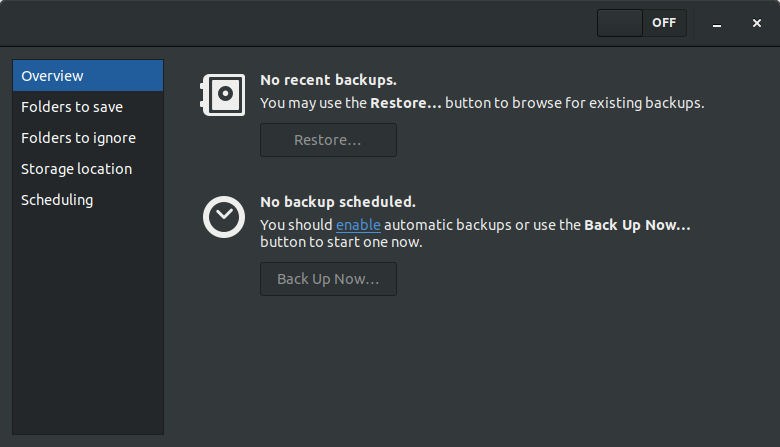 Ubuntu includes a backup utility called Deja Dup that can be used to backup and restore user data within an Ubuntu partition. The app can be located in Unity’s Application Lens (Windows/Super key + A) by typing “deja dup” or “backups”. Deja Dup is primarily a wrapper for the duplicity command line utility which provides its core file operations and encryption capabilities. Duplicity uses GnuPG with a symmetric cipher for its encryption and signing operations. The encryption key is based upon a user-entered password which can be stored in the GNOME keyring if desired.